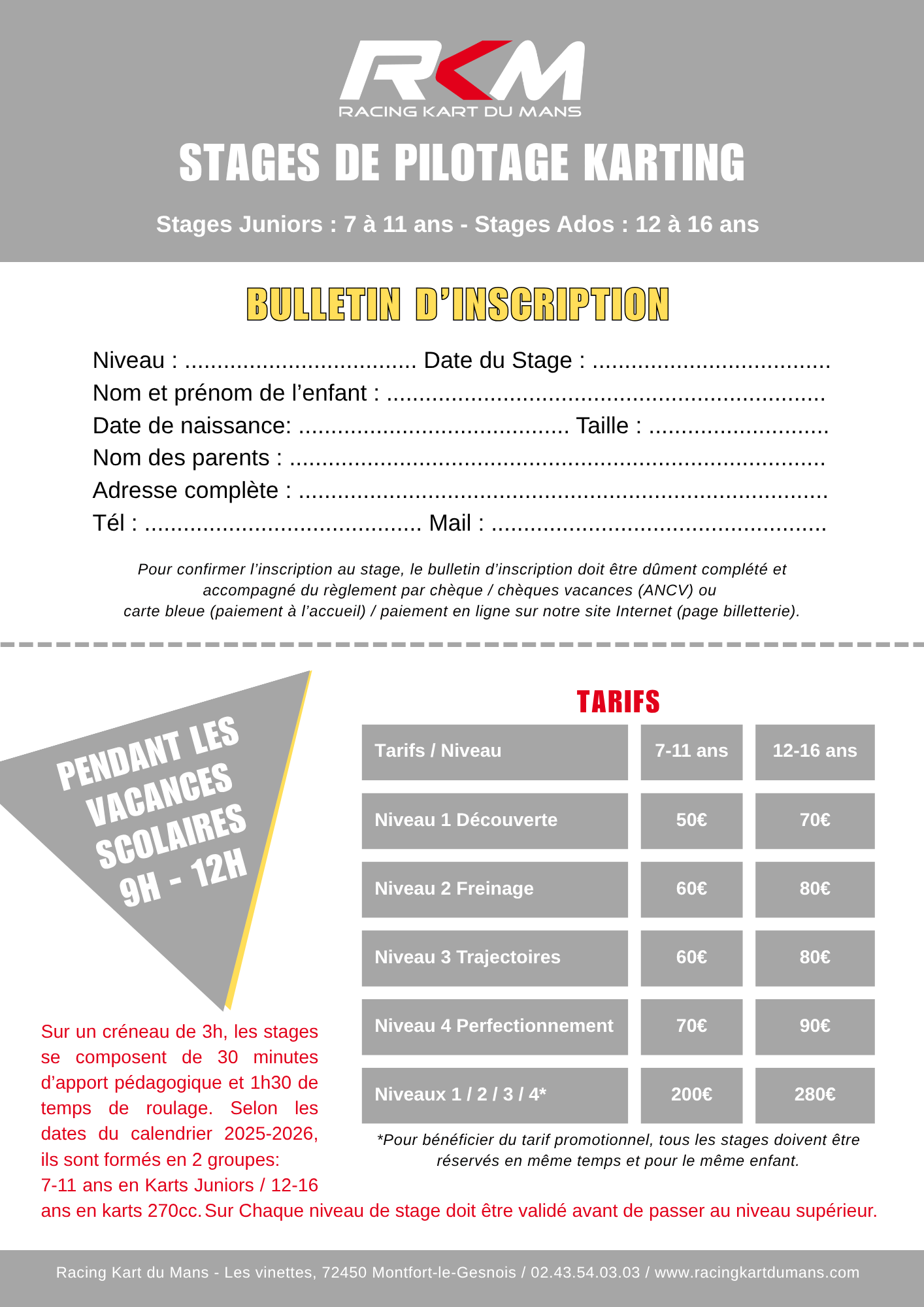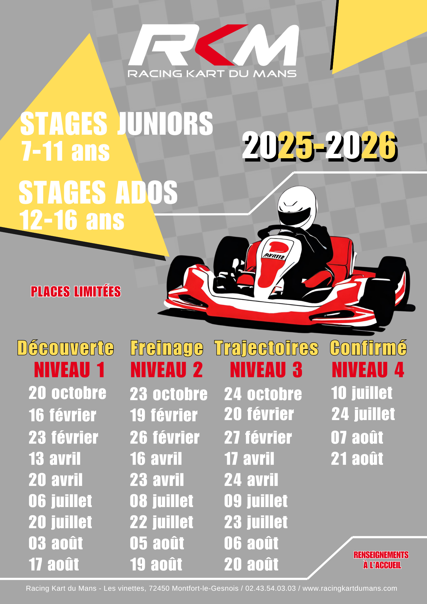 STAGES PILOTAGE KARTING A CHAQUE VACANCES SCOLAIRES